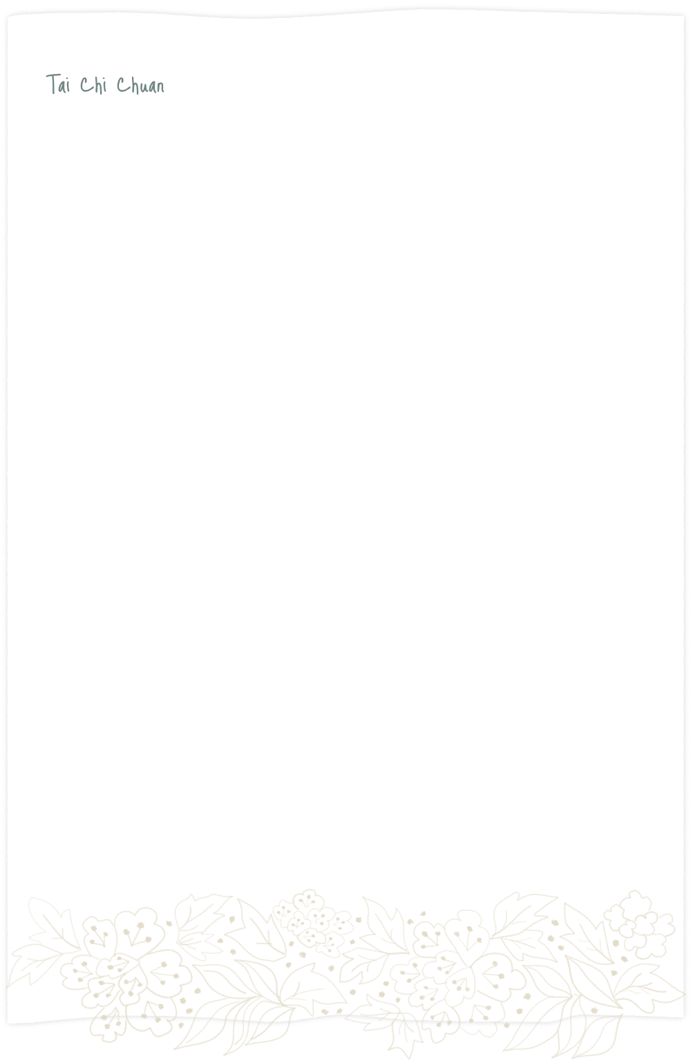 Tai Chi Chuan is a gentle exercise, a moving meditation, a martial arts system and a life philosophy. It originated in a Daoist monastery in China as an internal martial art practised for self-defence and spiritual cultivation. It has evolved into a part of modern life, but still continues the wisdom of the ancient masters.
